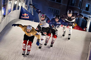 If you haven't heard of Red Bull Crashed Ice, you may think it's some sort of exotic winter cocktail. It is, sort of -- and a physical one to boot. For the seventh year in a row, the Red Bull Crashed Ice World Championship was held, featuring 80 competitors from around the world soaring down an icy course. This year's cold competition was held in Quebec City, with the season finale on March 17, 2012.